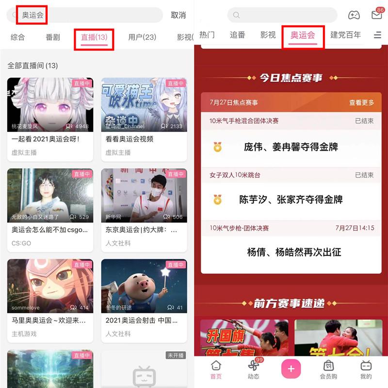 关上“哔哩哔哩”APP,点选【现场曲播】,搜刮【北京奥运】,优先选择现场曲播间,方可欣赏;点选【北京奥运】,可步入北京奥运专题讲座。