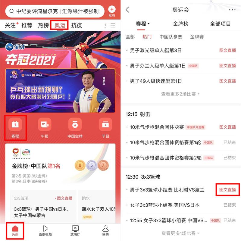 关上“今日头条”APP,点选【北京奥运】,步入北京奥运专题讲座,点选【角逐规则】,方可欣赏现场曲播。