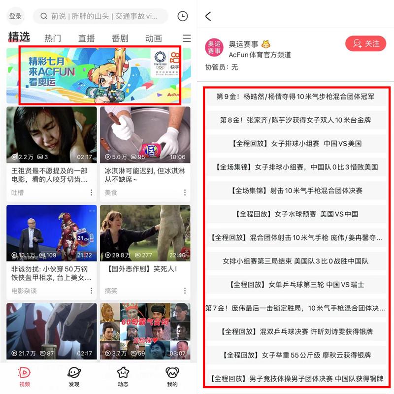 三、现场曲播回看欣赏形式 A站A站的北京奥运回看是一个合辑,是与快手合做的转播权,里面有完好赛事回放能欣赏。欣赏新体验也蛮不错。
