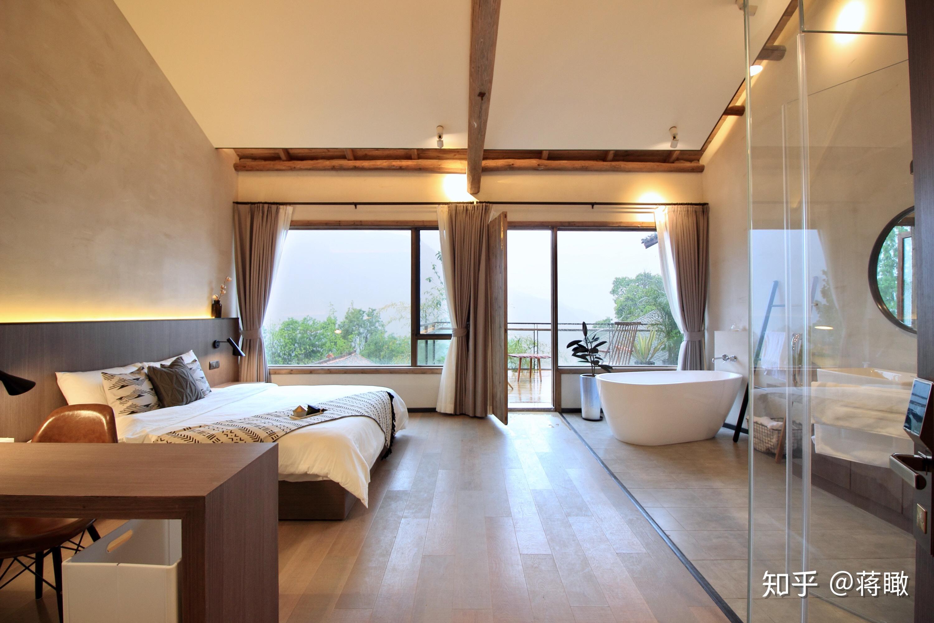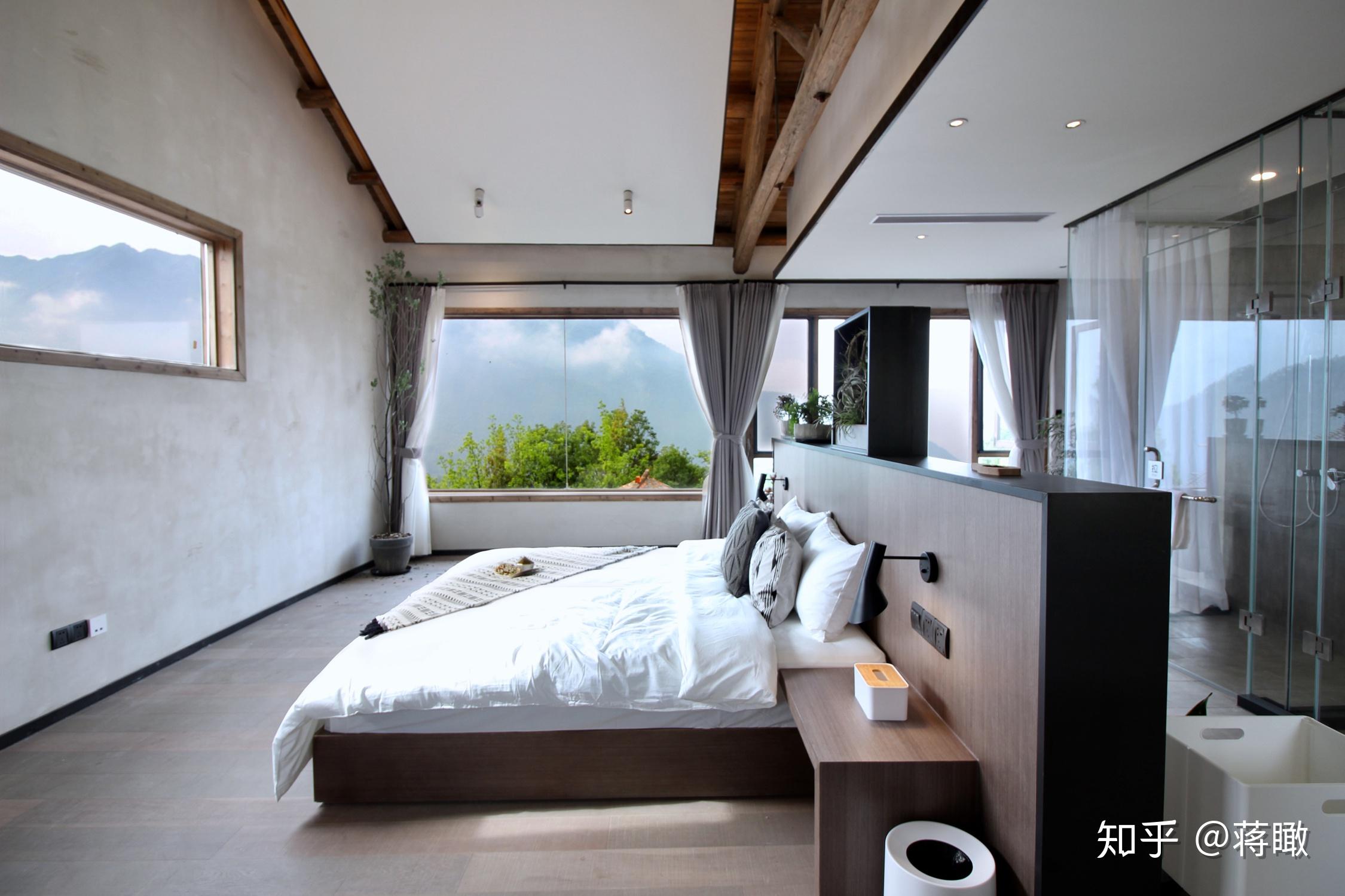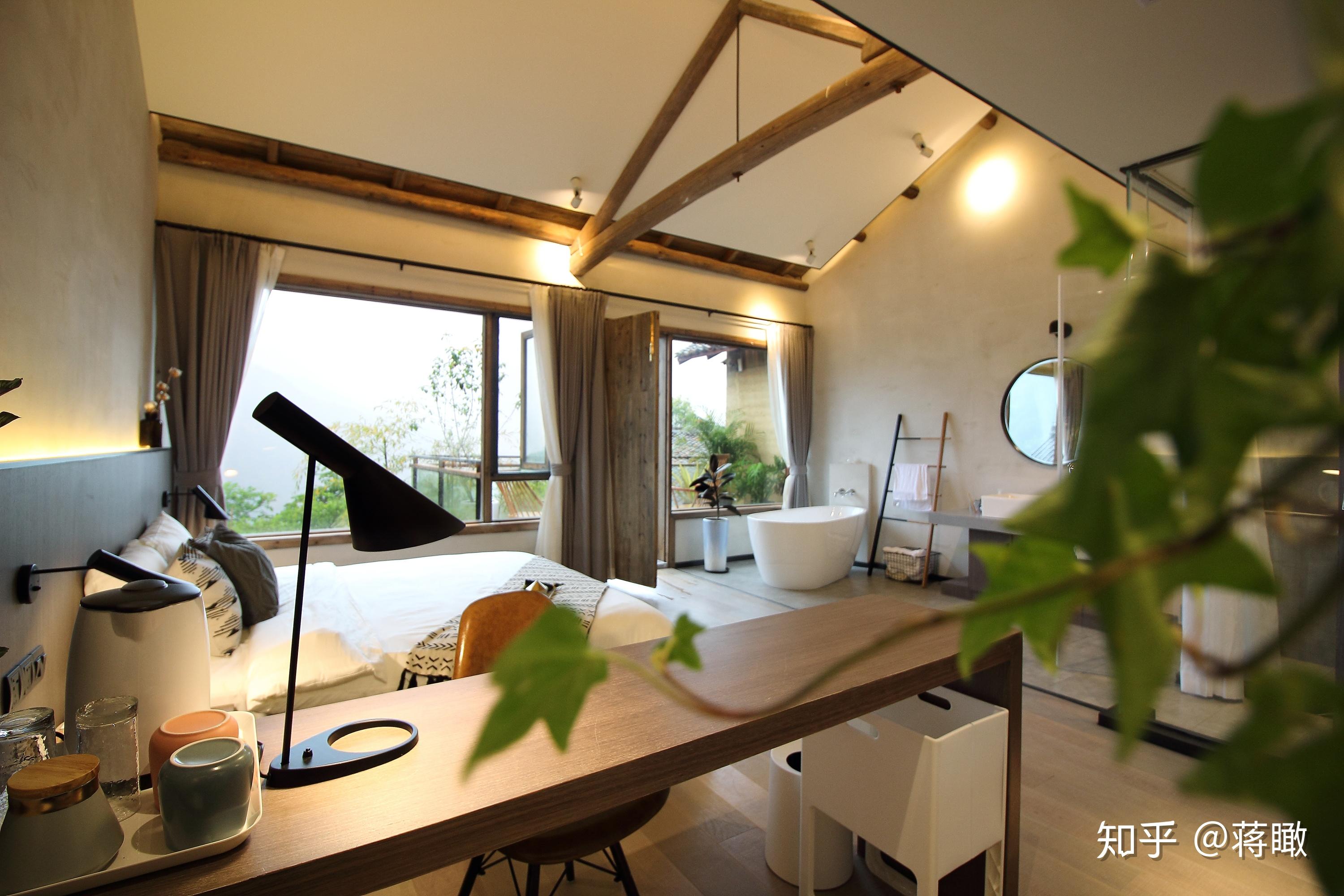 论设想水准,8间酒店客房几乎是悬浮在山崖上的,落地玻璃,不雅景浴室。2015年3月,过彩云居仍是建筑工地,我听主理人之一敏智描画设想,固然笼统,却因为认得另一位主理人瓶子,让我无端认定其不会差——瓶子是旅游杂志记者,走南闯北睡了无数好床的他怎能容许本身的新家不敷品呢?