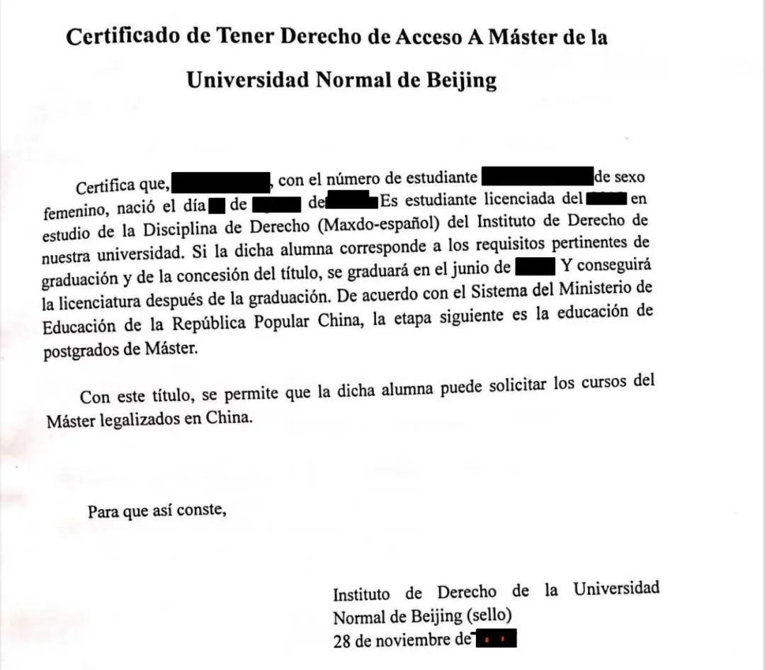 可读研证明,来源:北师大需翻译成西班牙语/英语并停止公证双认证。