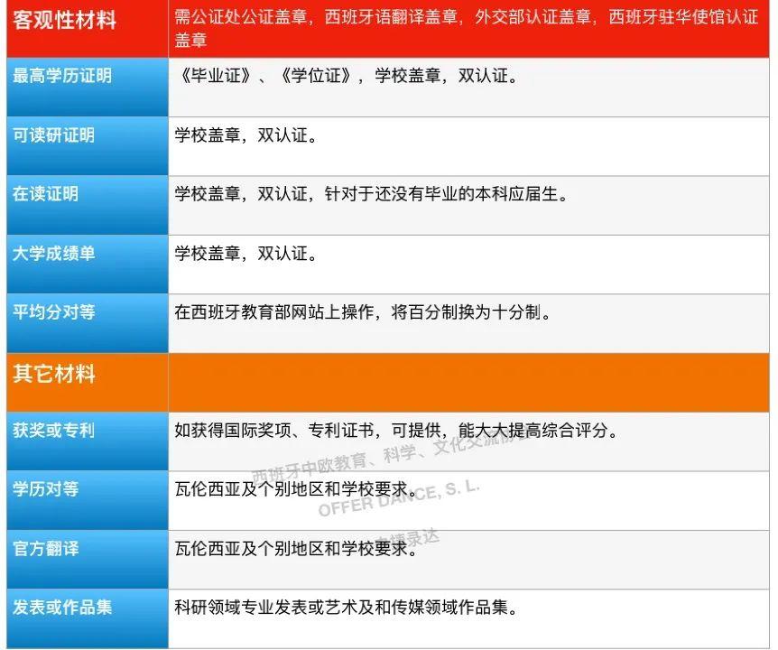 西班牙硕士申请质料清单,来源:Offer Dance为了便于记忆,质料一般能够被分为客不雅性质料和主不雅性文书。