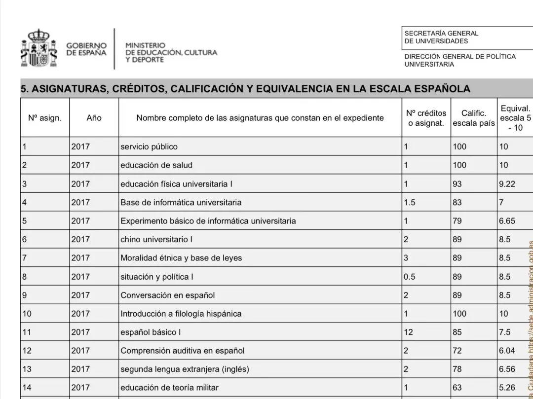 均匀分对等网站,来源:西班牙教育部西班牙的大学接纳10分造,而国内大学遍及接纳的是100分造。而均匀分认证(nota media)的目标是为了对等和转换各个国度的大学成就与西班牙的分数轨制相对应。