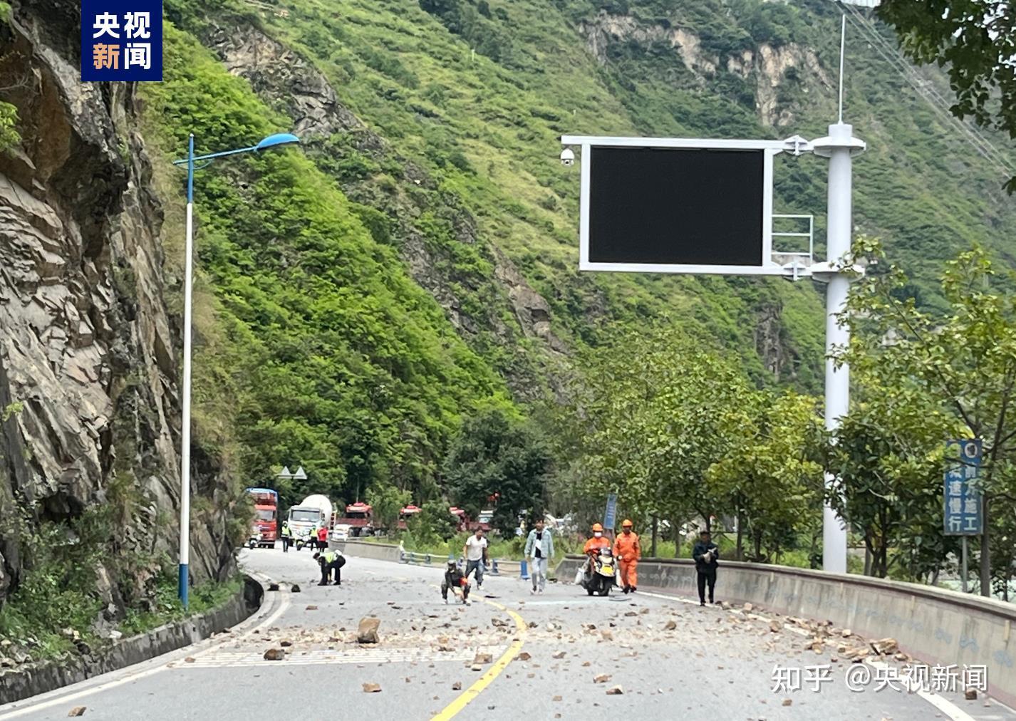 四川甘孜州消防救援收队全勤批示部已行至震中约24公里,沿路发现大量垮塌石块。