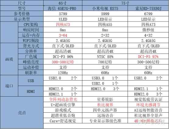 按体积分:55寸电视节目所保举(含模块对照)|65寸电视节目所保举(含模块对照)