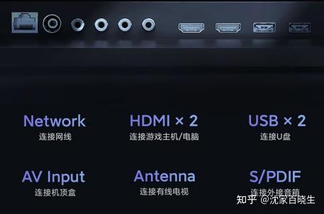 有2个USB接口、2个HDMI接口,毗连有线电视、机顶盒、网线、外接音响接口各一个型号:75D8K 尺寸:75英寸 价位:7000+