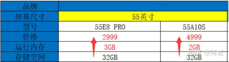 1、价格和运转缓存模块上,55E8 PRO占据着绝大的优势,3G运转缓存带来的是软件操做速度的上升,而2G的运转缓存日常利用也是完全不受影响的.