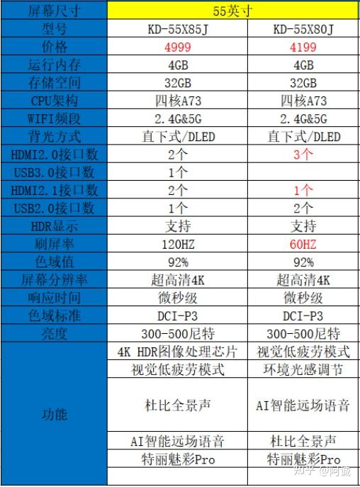3.2 3000-5000代价所保举Sony KD-55X80J 55寸