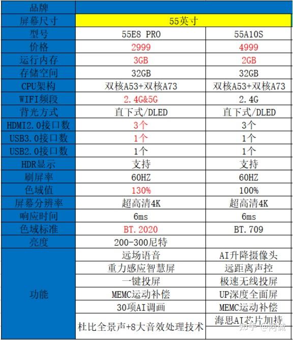 总结:对屏幕、听觉、控光和缓存有出格大需求的话,建议选择55E7G-PRO。