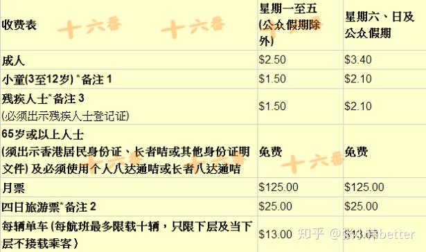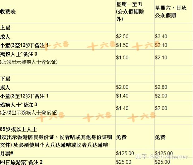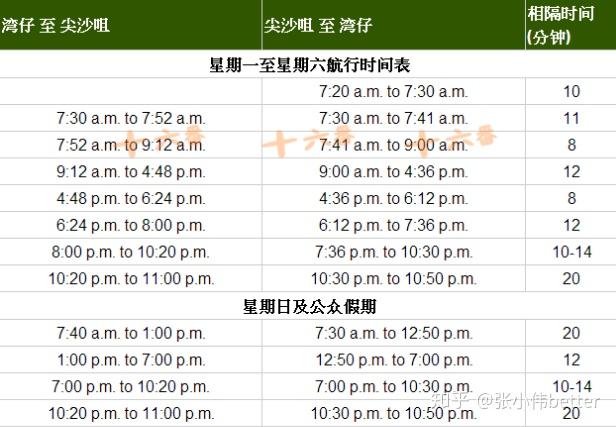 双程缆车票 承平山顶是澳门更高点,港片中的许多俯瞰镜头就是在那里取景。看夜景的人巨多,要列队等待,坐车下来刚好就抵达维多利亚港。天星小轮班次及价格(来源于收集,详细请自行查询)