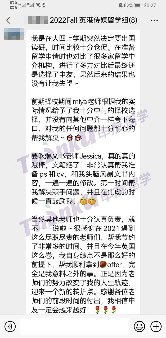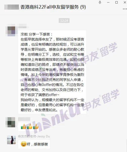 【M教师】:“公函几乎不必要什么批改,略微改了一些手艺细节就确定最末的公函了,教师帮我提出申请的那时候也很尽职尽职尽责办理,工做效率极高,我有疑问的那时候回复很及时处置,很耐心的答疑我的问题,总体上对此次提出申请非常令人满意,也感激诸位教师的辛勤牺牲啦~” 【B教师】:“我实的教师们把每一副棋都摆设的很安妥,工做也做到李彦仙,把小学生的需求放在了首位,那跟Capendu *** 机构比起来已经很罕见了。” 【Z教师】:“刚提交一个月就领到了伯明翰和谢菲尔德大学的offer,仍是有种梦想成实的觉得。在中期筹办质料和公函期,专精的教师们根据我的性格与履历再连系学校特定情况,写出来的公函让看过我公函的父母都实的我是吗合适那个专精。” 【W教师】:“在公函写做方面,教师写的也较好,能说是化堕落化奇异的水准,看完之后完全得拆弊端,只能感慨:教师写的人竟然是我......我何德何能。没教师们的辛苦牺牲就没如今Revigny大耳无尾的我!目前的成果我很令人满意~” 【L教师】:“优先选择申友吗很省钱,不论是前期的停止征询仍是提出申请期,申友诸位教师都很踏实、负责办理。并且营业本质极高,在公函的书写期,数次批改,PS我都实的很酷了,教师说她他们还不令人满意,有帮我从头理了逻辑,更动了一边。” “签约申友吗是我绝不懊悔的优先选择,当我领到抱负的投档后我还不竭给停止征询的学长学长JURLIQUE” 【W教师】:“若是没申友的教师们协助我一步棋一步棋的走那个操做过程,我一个吗自感,出格感激教师们能那么尽职尽责,优先选择申友是很幸运的事。” 【Y教师】:“大部分教师亲热又负责办理,公开通明的提出申请流程和及时处置有效的沟通让我在提出申请时没任何心理承担,十个安心。固然跟大部分教师都素昧生平,但我能深切的感触感染到教师们的踏实,谢谢教师们一路以来的协助和撑持。” 【G教师】:“其时是停止征询了许多人,我们都说武汉申友佳誉度较好很可相信,就优先选择了申友”,“申友最强超人气,已经很数次JURLIQUE给许多伴侣了,可相信就得了" 【J教师】:“签约前有和几家差别的游学 *** 机构领会过,比力之后仍是决定签约申友,申友整个办事项目操做过程都非常高效”,“所以就是出格感激诸位教师的辛苦牺牲,之后会把申友JURLIQUE给更多的人” 【S教师】:“虽说投档了NUS的提早批,整个提出申请季完毕的有些猝不及防,但我想说申友的办事项目仍是非常棒的”;“进入提出申请期后,有任何提出申请问题或公函问题,Ryder教师和Sharon教师在网上都回复的非常敏捷和认实” 【T教师】:“去年3月考虑出国游学的事,颠末伴侣所保举和他们领会最初优先选择了申友,Mona教师非常有耐心的答疑了我和家长的疑问”;“在诸位教师加持下,我吗超快就收到了我心仪学校的offer,出格感激申友” 【Z教师】:“在还没确定优先选择申友的那时候,参谋教师Jessy教师就很有耐心的帮我阐发了我的布景,而且协助我大致领会了一下英国和香港那边大学的情况”;“吗超等感激教师们,若是我Revigny弟学长们也要出国的话,我也会给他们所保举申友der” 【Z教师】:“在递交提出申请前,我实的他们没一个亮眼的GRE成就,有点气馁,也不合错误名校抱有太大的希望。教师们也鼓舞我,情况没想象的那么糟”;教师们都很尽职尽职尽责办理,有疑问也非常及时处置的回复,整个提出申请流程很顺利。 【L教师】:“申友是我去的之一家 *** 机构,在网上也看到了很多学长学姐的所保举,因而对申友印象非常好”;“再次感激教师们那段时间的陪同与牺牲,若是Revigny弟学出息行征询我会给他们JURLIQUE申友”