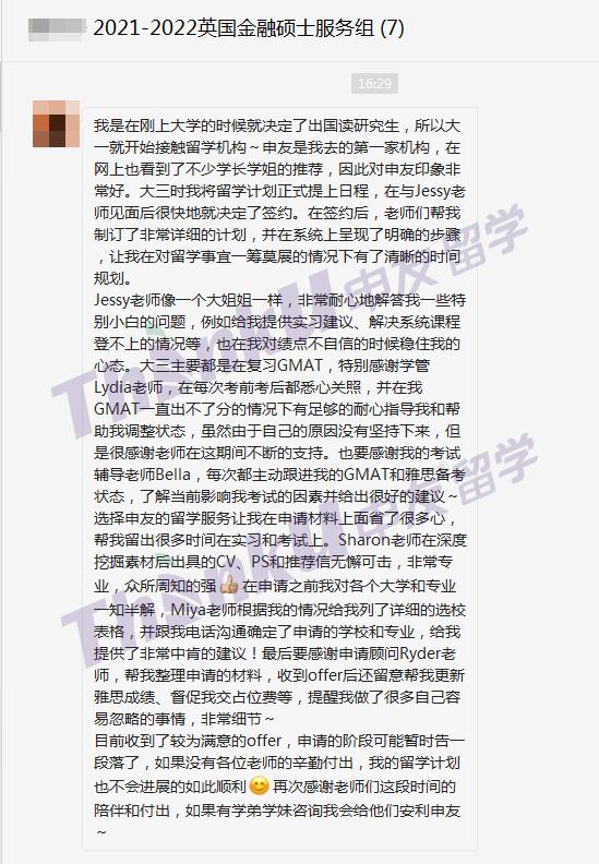 3、“六位一体”的超详尽专精办事项目六位教师为一位客户办事项目,多重环节严酷把关,保障小学生的问题都可及时处置处理和答复,竭尽全力为客户斩获更多的名校offer,鼓舞小学生冲刺更好的院校。家长也能进群,查看相关信息