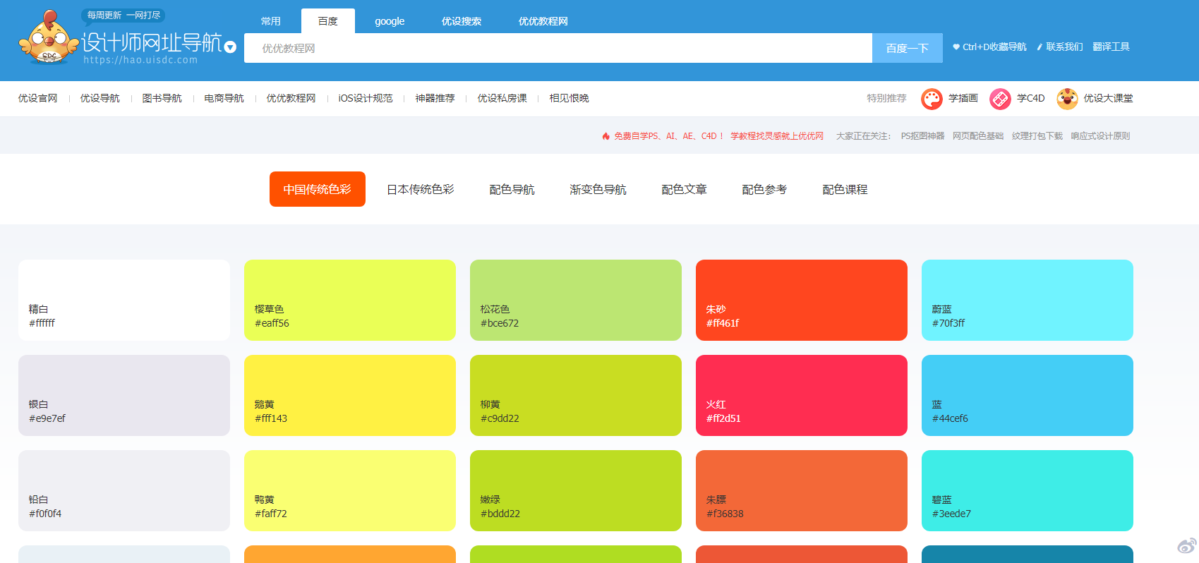 3.中国色彩大辞典中国/日本传统色彩定名,点击色彩可间接吸收色彩值