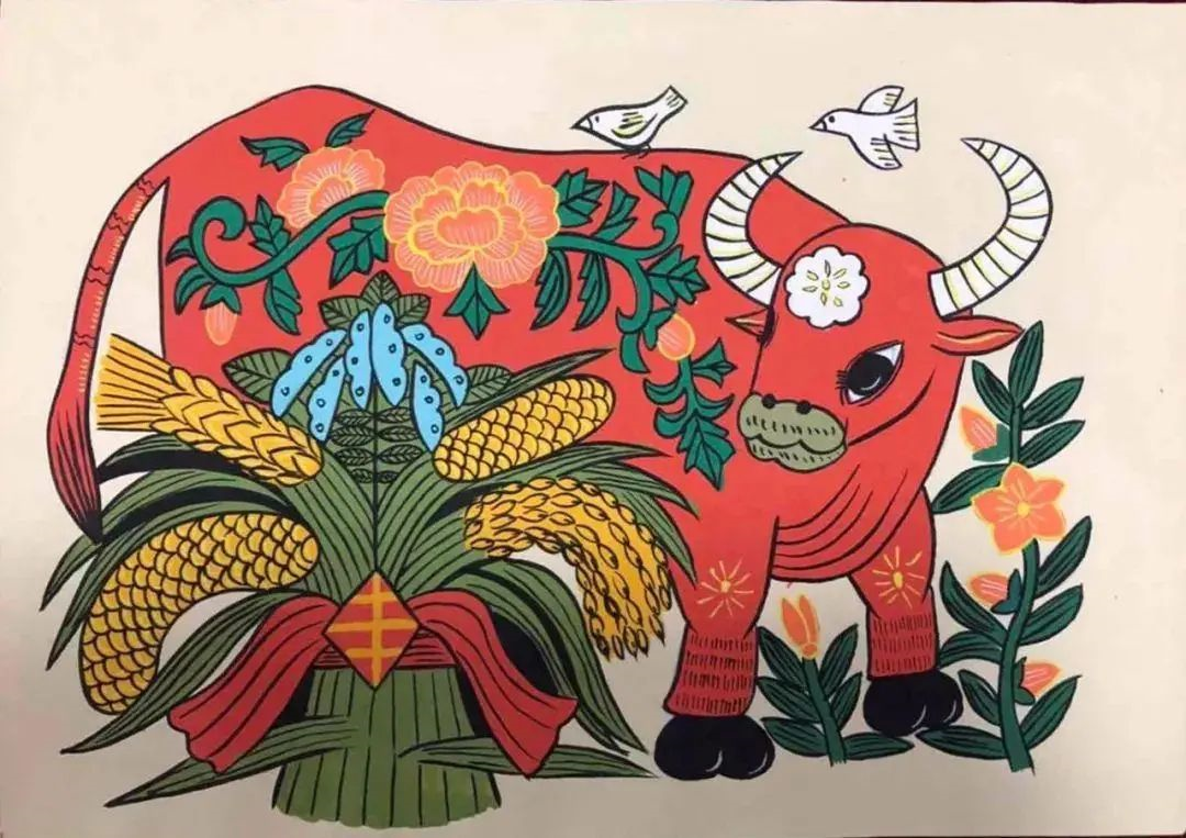 因为牛自古就帮忙农人耕种,是人们的好辅佐,所以人们对牛的豪情很深,把诸如憨厚勤奋,不求回报等优良品量附在牛身上,牛也象征了“五谷丰收,谷流满地”。