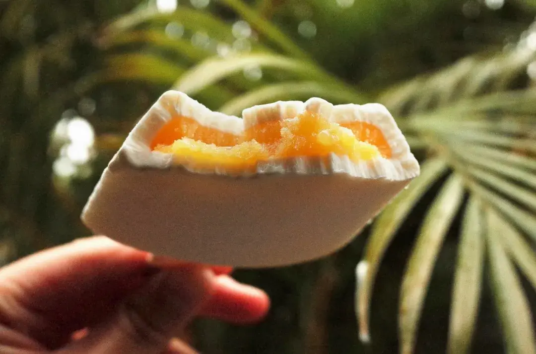 非常貌美,散发出一股淡淡的椰香。白色的椰浆部门香味很浓,比拟之下芒果味稍淡了一些。
