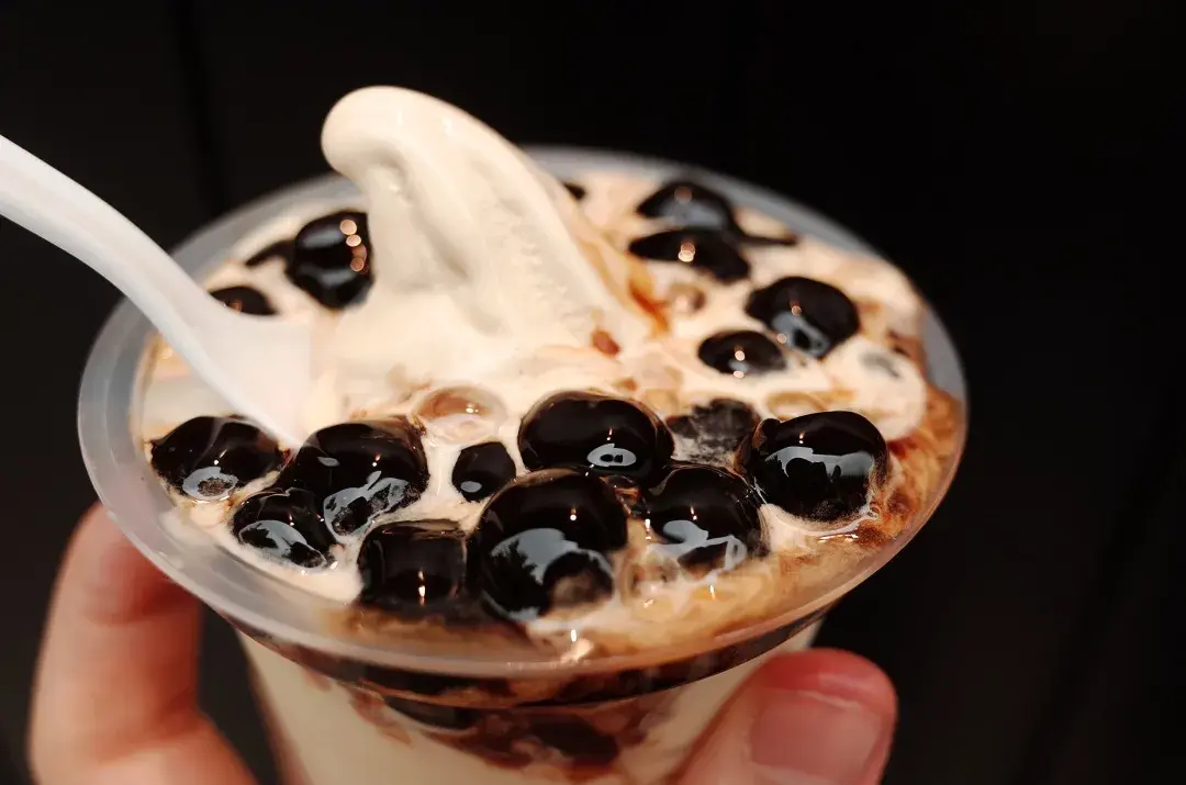 梅酒圣代的冰激凌部门,和梅酒甜筒是一样的。不外上面多了一层冲绳黑糖珍珠酱,黑糖味很浓,珍珠因为没有冻过,所以非常软糯,也很大颗,吃起来很过瘾。