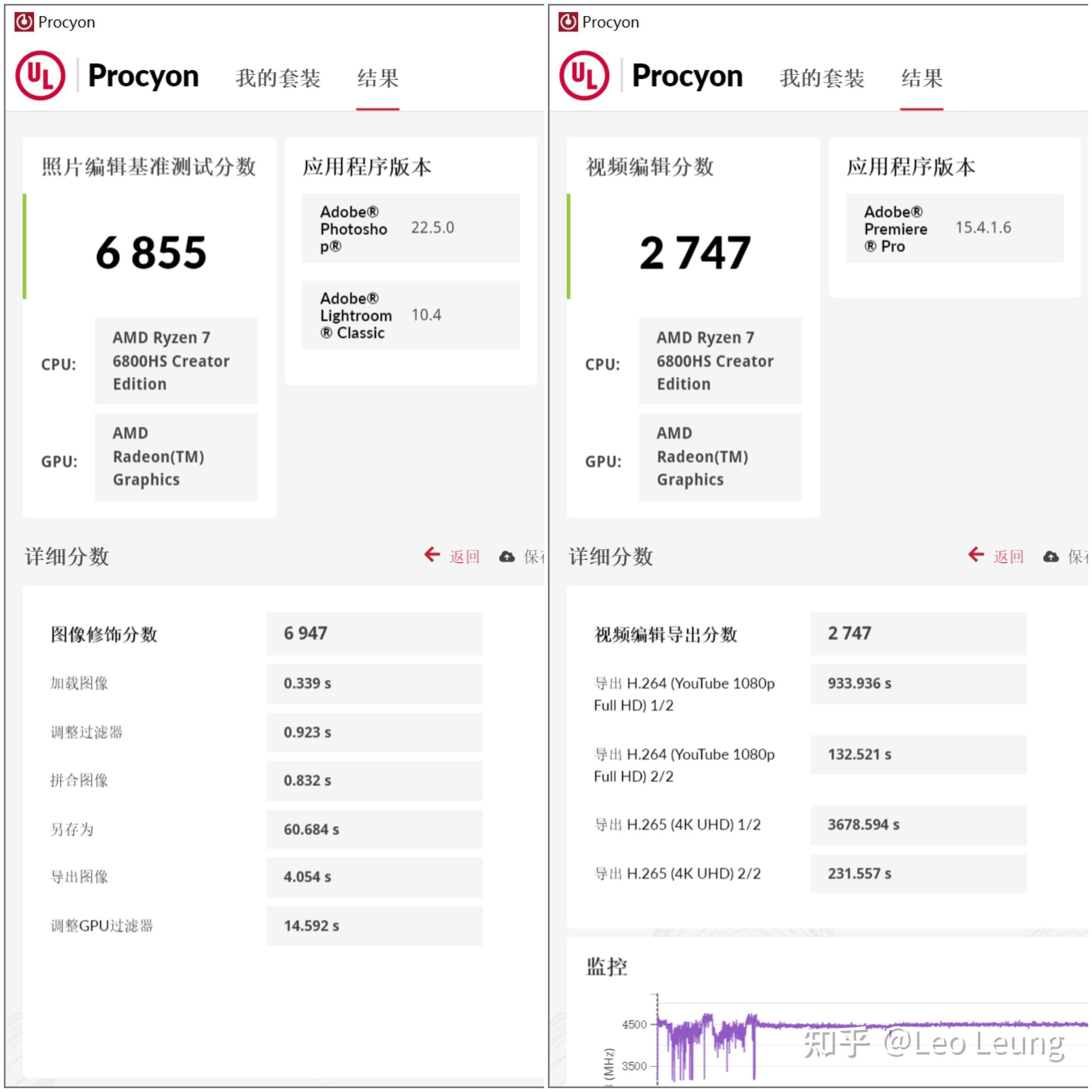 小新Air14 Plus的Procyon测试PR视频编纂得分2747;照片编纂得分6855。