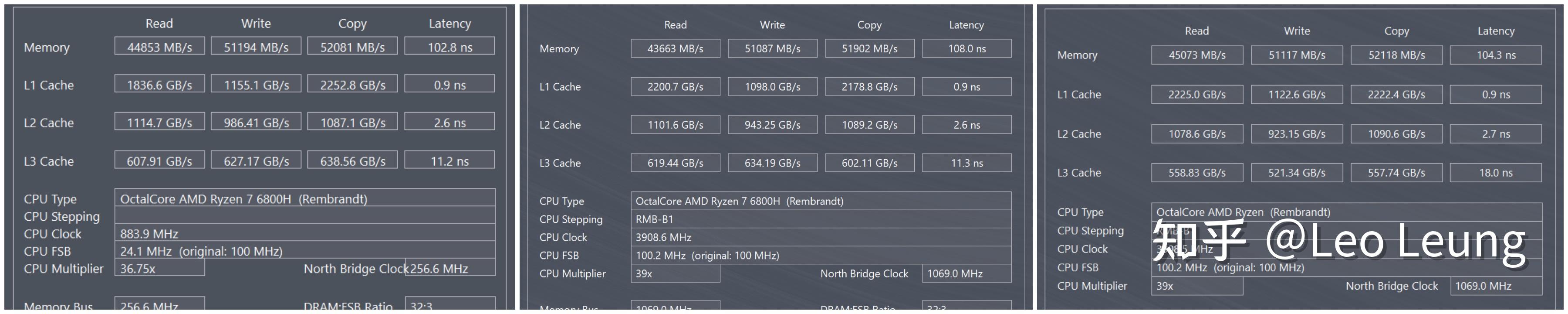 那两款机种均接纳板载内存,规格都是16G LPDDR5 6400MHz。跑分红及也都十分接近。内存读取速度44000MB/s摆布,写入速度51000+MB/s摆布,复造速度为 52000MB/s摆布、时延也都在105 ns摆布。