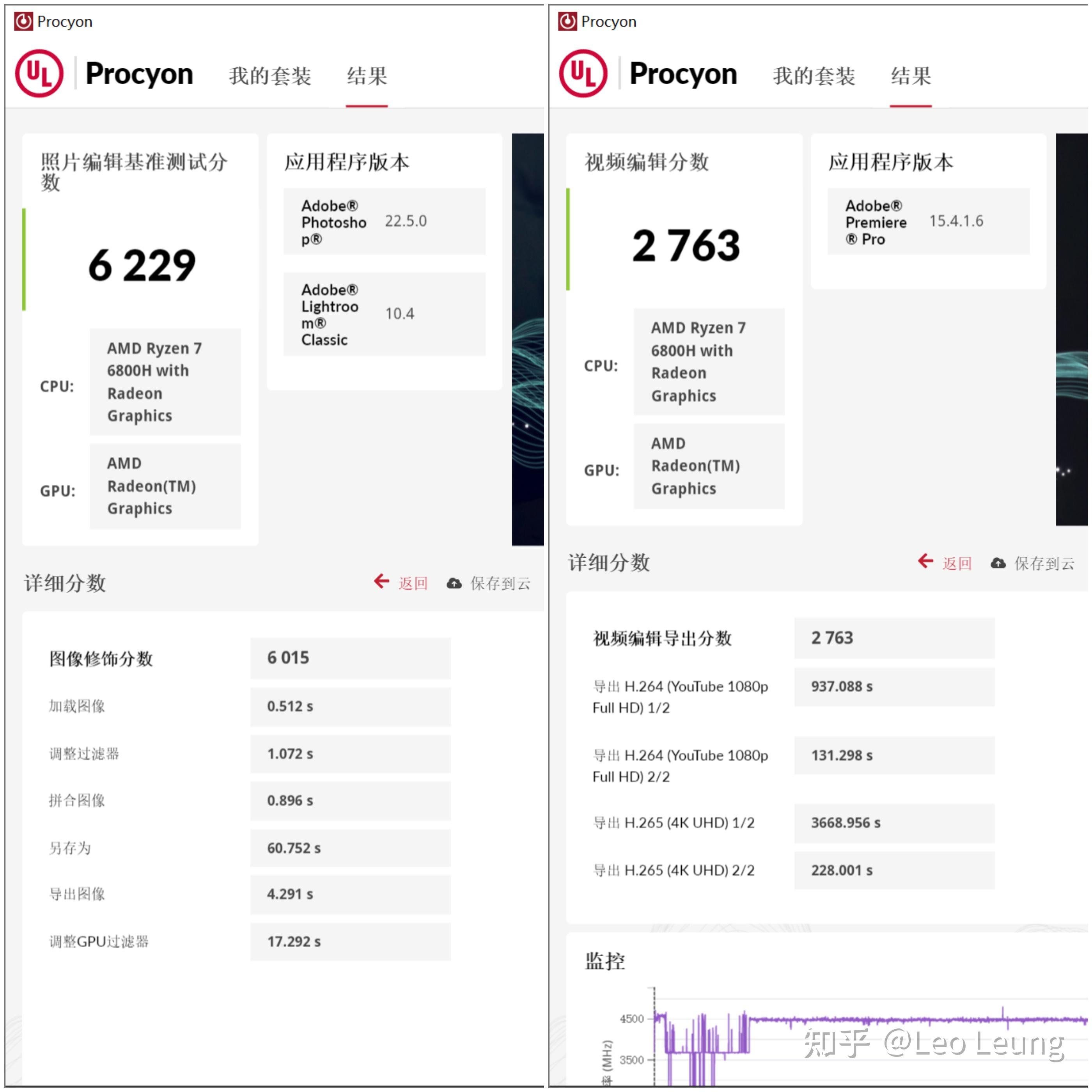 Magicbook14的Procyon测试PR视频编纂得分2763;照片编纂得分6229。