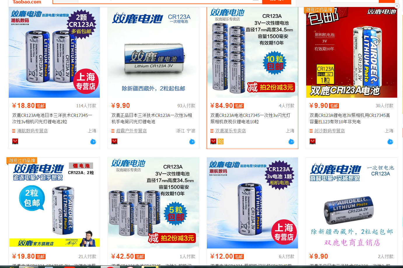 三,其他电池:cr123a其实电池品种太多,没有人能讲得完,我们今天说的是手电筒,所以在那部门简单说一下cr123a电池,部门手电的公用电池。cr123a也是比力贵的,双鹿就是9.9一节了!!