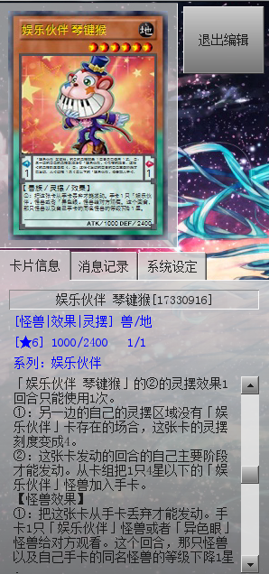 一点也不娱乐的娱乐伙伴的超等大腿,其最反常的处所在于贴P区即可检索肆意EM的怪,大都时候用来检索骷髅杂技小丑或者异色眼独角兽。于是你看到了,一卡即能实现1-8的刻度,其时几乎能够将山公+小丑+小马做为增加特招的部件挂在大部门卡组傍边,小丑通招能检索山公,然后山公贴P区再检索小丑/小马,系统内轮回检索啊!EMEm卡组先靠火布偶杂耍魔术家龙剑士等频频炸卡赚卡出强力R4统治情况,后来丢弃被打压的Em系统,靠猴丑爹龙剑士酿成EM龙剑卡组,照旧频频炸卡赚卡出强力R4统治情况。再然后……卡组一件工具都被制止或者限造了……