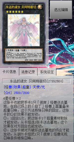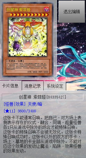 因为索菲亚极高的出场难度,K社便赐赉了它比帝龙愈加凶残的才能,将手牌墓地场上的资本全数除外,并且特招怪效均不克不及康掉。当然,它只能存在于各类花式combo中,好比各类一卡创星神(参考上面一卡FTK)。