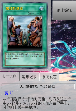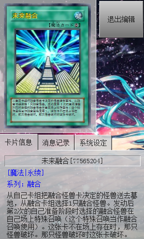 和上面的苦选差不多,也是精准堆墓,但因为不限素材数量的交融怪的呈现,所以比苦选愈加反常,在电子龙,狱火机,异虫等卡组里面,一卡能将整个卡组里面的怪兽堆下墓地。本来将来交融是交融援助卡,却因为游戏王对墓地越来越重视而遭到制止