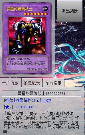 和木龙一样,异星也是跟弗兰肯粘在一路的怪兽卡,其拥有彻底封印两边招怪的才能,实正做到一卡行战。但因为对方仍是能够盖怪,同时也阻遏了本身召怪进攻,所以大部门情况下都没有木龙好用。