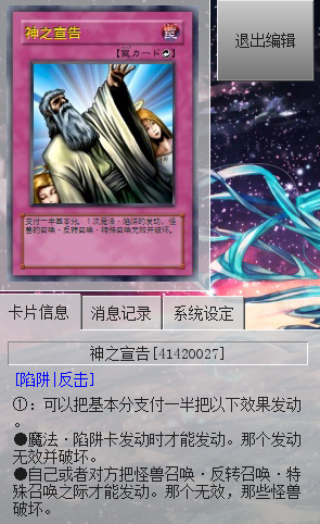 K社为了平衡先背工而出的一张解场卡,能够从手牌策动的陷阱卡,类似机壳物量主义的规则去除,强大的里侧除外,避免资本再操纵。