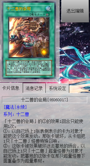 2017.11.12更新:十二兽从巨匠3末期不断祸患到link期间,靠一卡展开兼容大量手坑,硬刚全盛EE也不落下风,末于落得个九又三分之一兽的下场。会局制止,龙制止,牛制止,鼠限一。