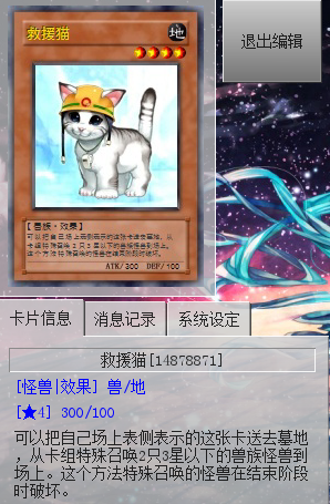 救援猫,萌萌的它拥有十分强大的特招才能,而且因为是兽族很容易被苏生,在同调时代它和召唤僧构成了大名鼎鼎的猫僧同调卡组,凭仗强大的特招才能,不竭召出6星白怪光枪和御用,后来光枪,御用,救援猫都相继遭到制止,召唤僧也遭到限造。