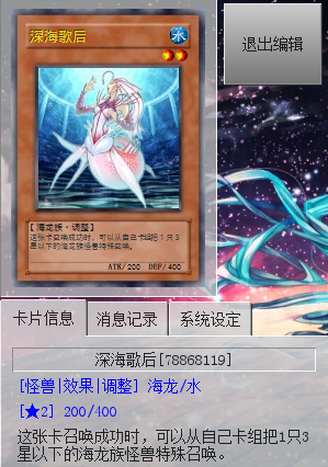游戏王史上之一张能在当前卡池来单卡FTK的卡,前面几张在它们实正能单卡FTK之前就因为太跳了而遭到了制止。凡是是用来跟海皇子初动,在水产卡组中就有了各类combo弄法。后来更是被人玩出了一卡FTK,不外K社十分机智的将其限造了。