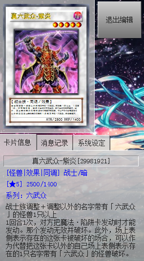 尺度的时代的眼泪,曾经是65卡组中十分强大的末端,2卡即可出,拥有必然抗性和康一次魔陷的效果。然而因为65卡组各方面都跟不上时代了,所以在三门全数放出来的今天也看不到紫炎了。