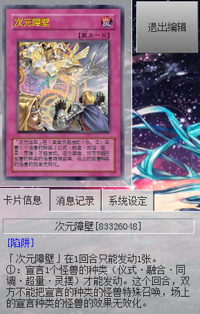 时至今日,陷阱卡延迟一回合策动招致的卡手缺点,因为情况的加速而越来越明显,同时手坑也越来越优良,康类陷阱卡的地位朝不保夕。于是K社便印了如许一个几乎相当于二速色之的次元壁障,不怕风,十分灵敏,完美躲避了虚无空间技能抽取那些老前辈的缺点。于是,神之布告和次元壁障几乎成了情况内仅存的康类陷阱。