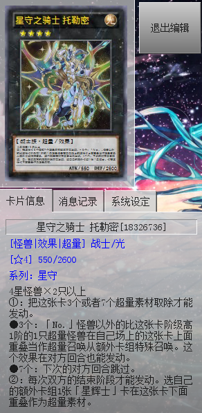 另一个世界中不动游星的王牌,算是一个彩蛋吧。自从偷星虫制止之后,K社印高星白怪也旷达了良多。好比那个耀变龙,强度比之前的12星白怪高了很多。同时拥有流天戟炮超电磁龟三种效果,康效果,康召唤,康战阶,更凶猛的处所在于其从离场到回场都是cost,那意味着它的效果不消担忧被康,一旦正规出场,连神字辈都干不掉。