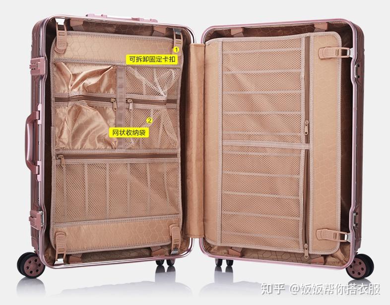 宽幅是一体成型的,ABS+PC的织物,抗压、耐热,回弹性好,里面的分区超多,还有固定卡扣,行李不会乱跑,临时翻开箱子,私密性也有保障,正面有一个挂钩,挂个手提袋还能解放双手。