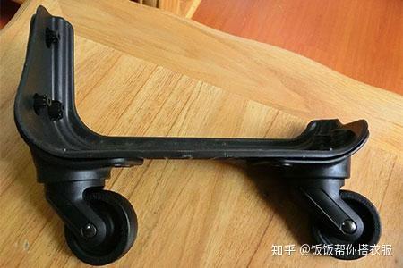 三、有关零件:1、必选六轮万向轮,其次是三轮万向轮,万万不要买塑料包裹的双向轮,塑料颠末破损会升温断裂,尤其拖很重的行李就是个毒瘤。