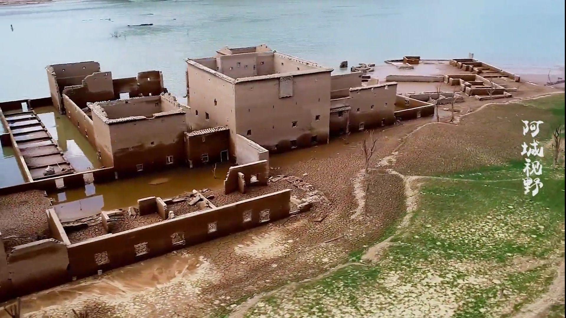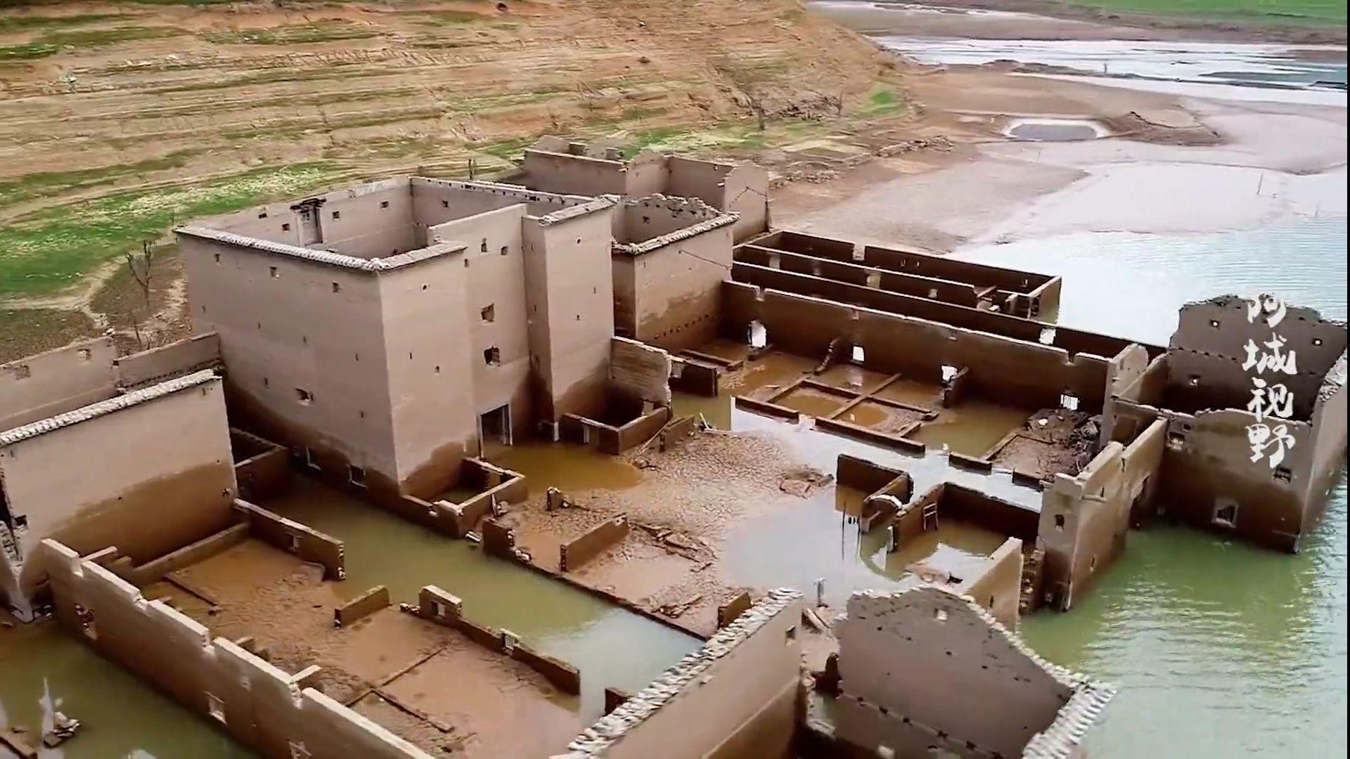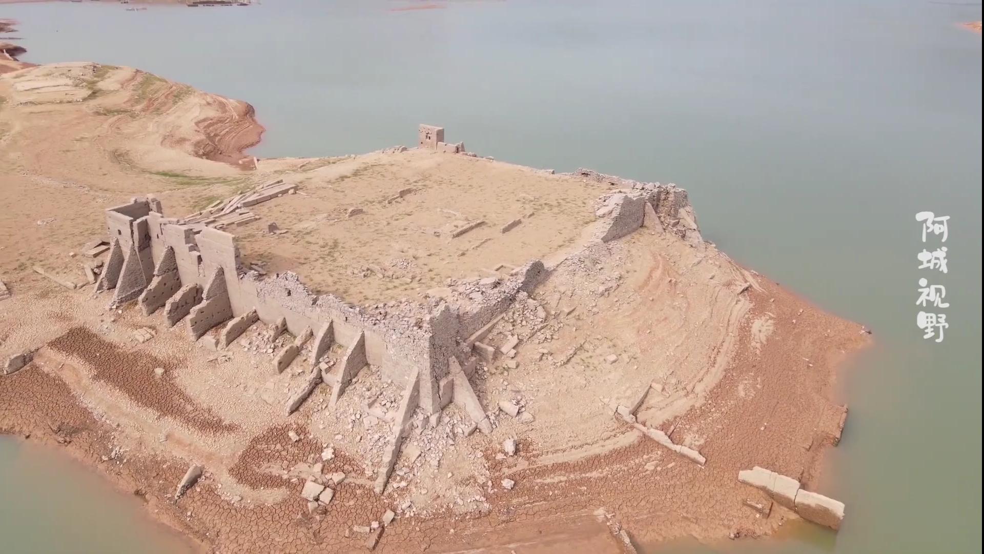 龙溪水库中被吞没的建筑物。