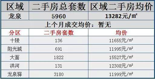 职教区仙人树片区、龙泉片区、顺天长城片区成交申报销售价格削减,其它片区成交申报销售价格均下跌;