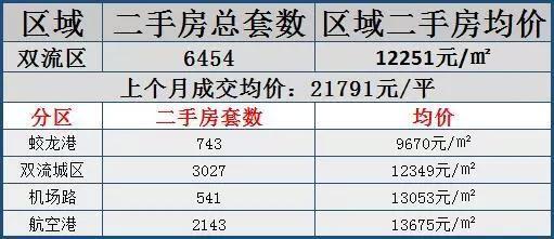金牛区龙潭寺片区、玉双路片区、东客站片区、东郊记忆片区成交申报销售价格削减,其它片区成交申报销售价格均下跌;
