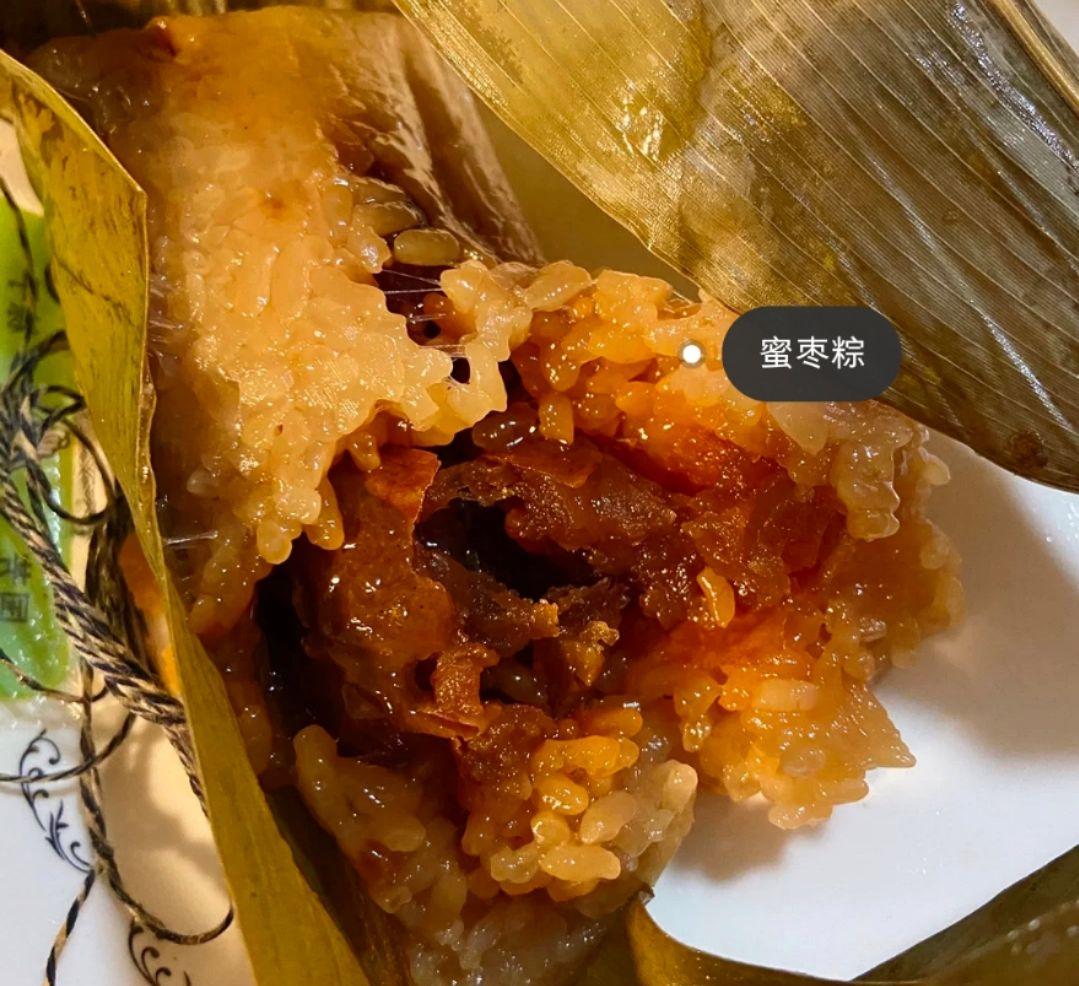 东坡肉粽实的是肥而爽口,日常平凡不爱吃肥肉的我,吃下去完全没觉得到腻,色泽咸淡适中,软糯清香。