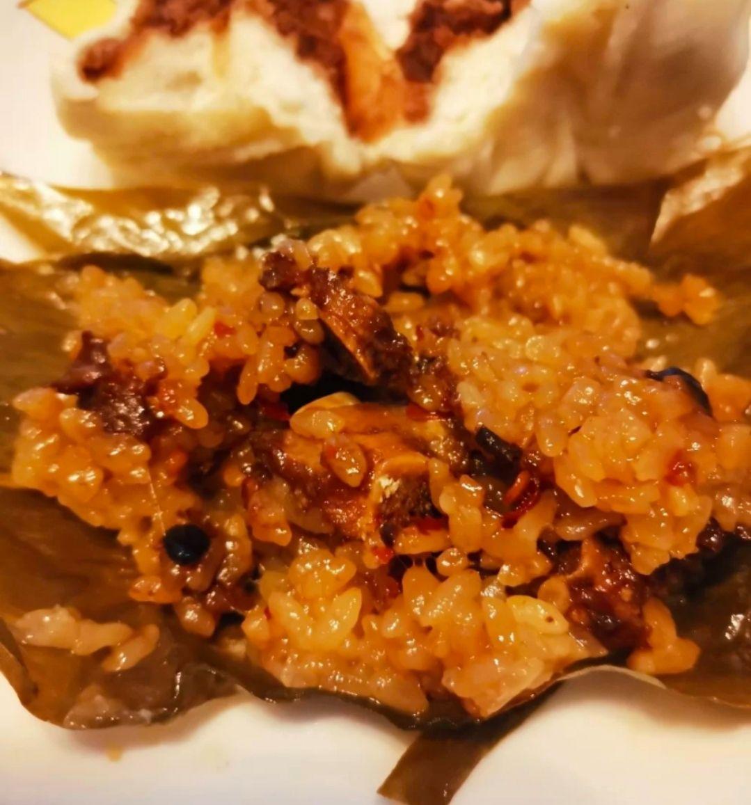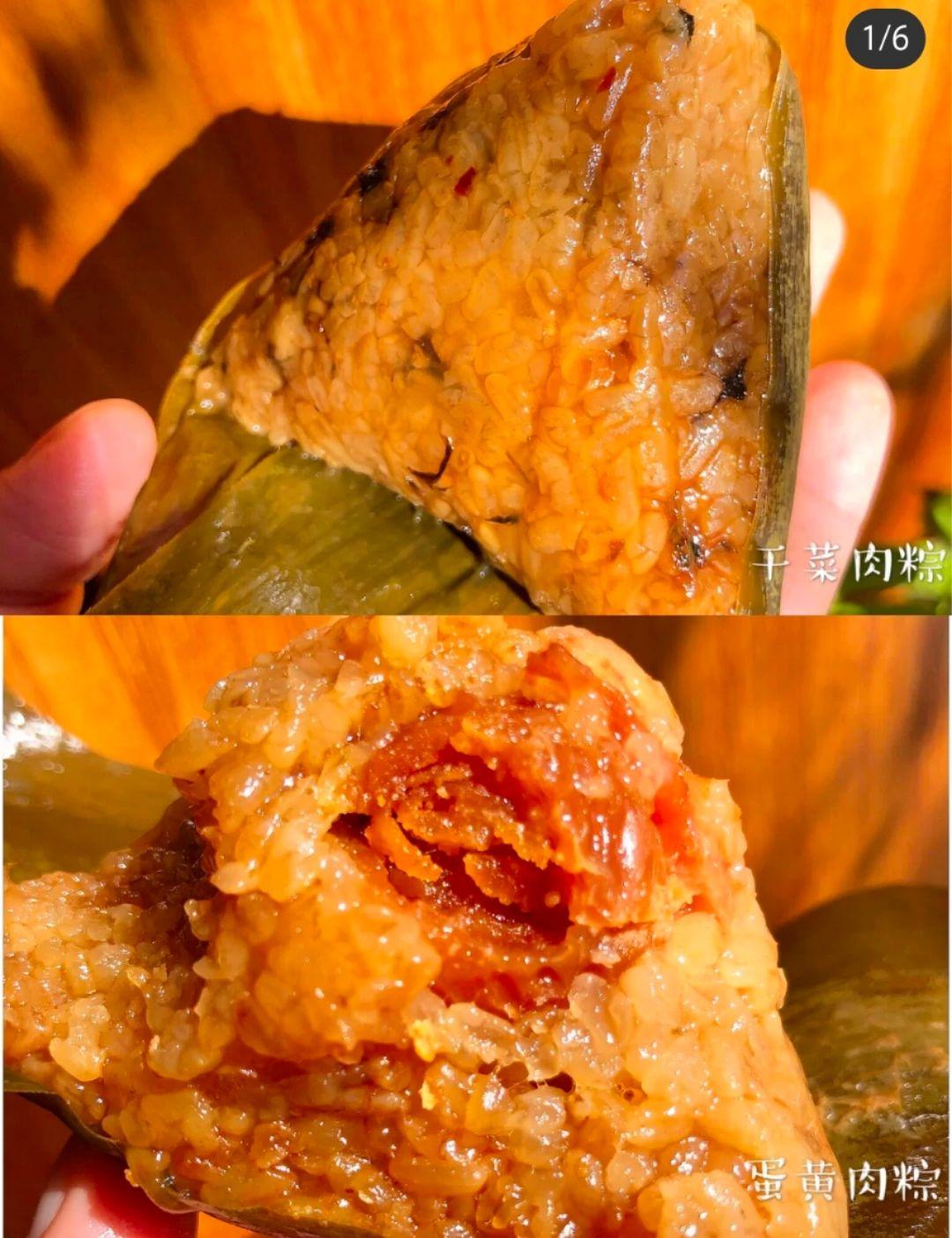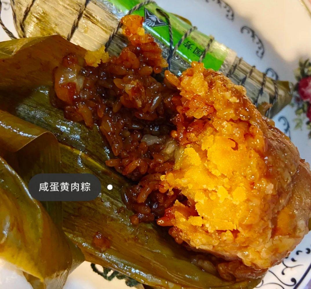 咸口的话鸡蛋&名酒谭氏龙肉粽,个头很大。米饭裹满了酱料,很爽口,油洪亮的鸡蛋DT香,几口米饭几口肉,很顶饱。