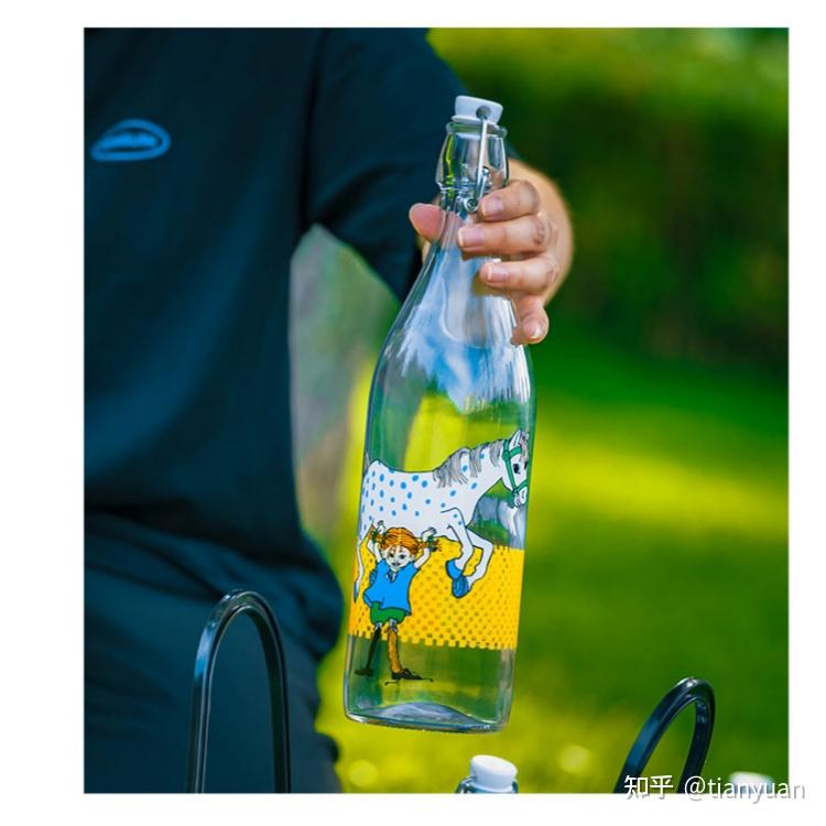 芬兰国际品牌muurla的姆明玻璃水瓶,图案心爱,密封性好。