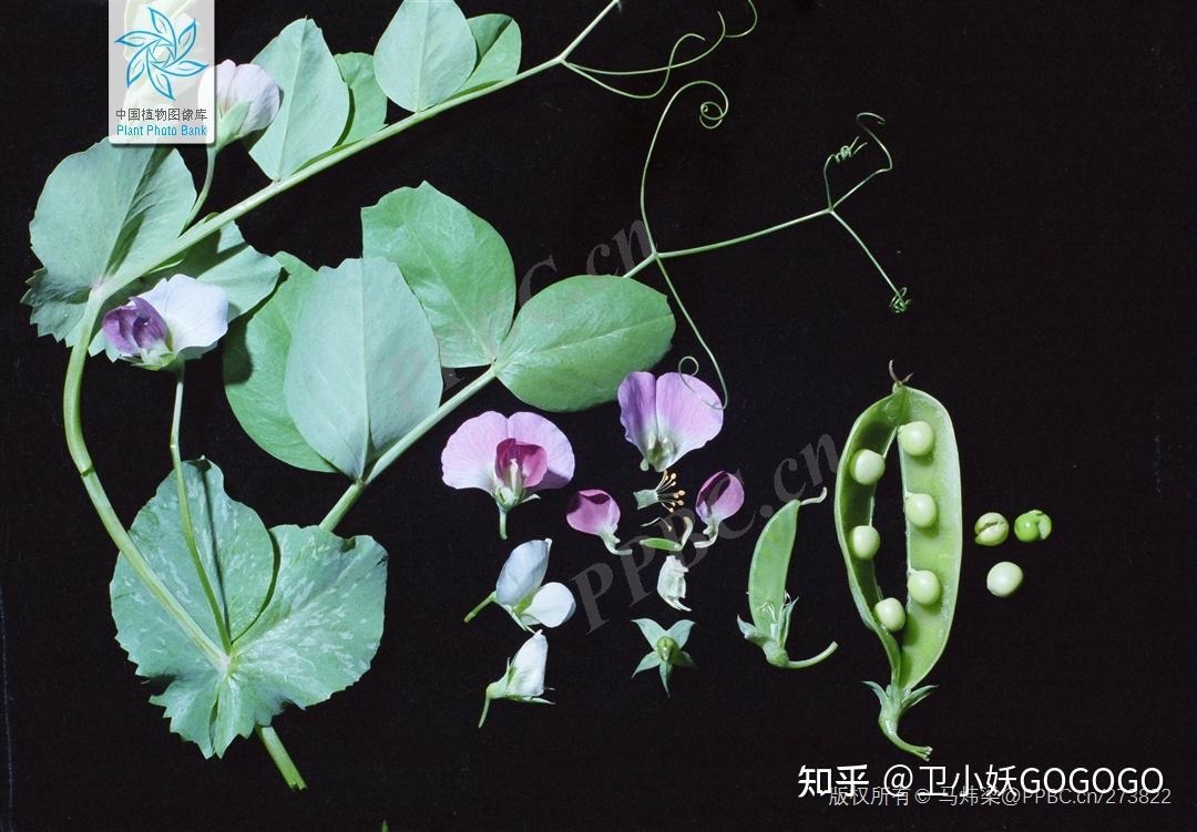 豌豆的叶子花和果实豆荚豆子,图片摘自《中国动物志》