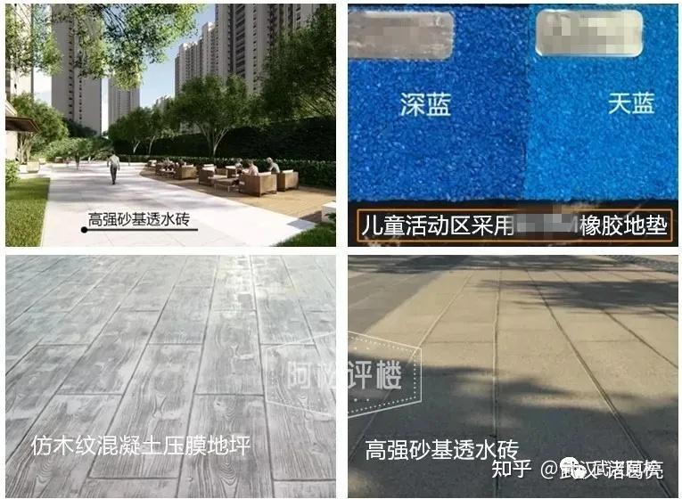 小区主路铺拆接纳高强砂基透水砖,可到达高滤水功用和耐久透水性,既高档又环保;小区部门道路中接纳仿木纹混凝土压膜地坪,款式更美妙不说,还具有防腐、防滑、耐磨等特点;儿童活动区接纳橡胶地垫,既丰硕的色彩,还有优胜的耐氧化、抗臭氧和抗侵蚀的才能。