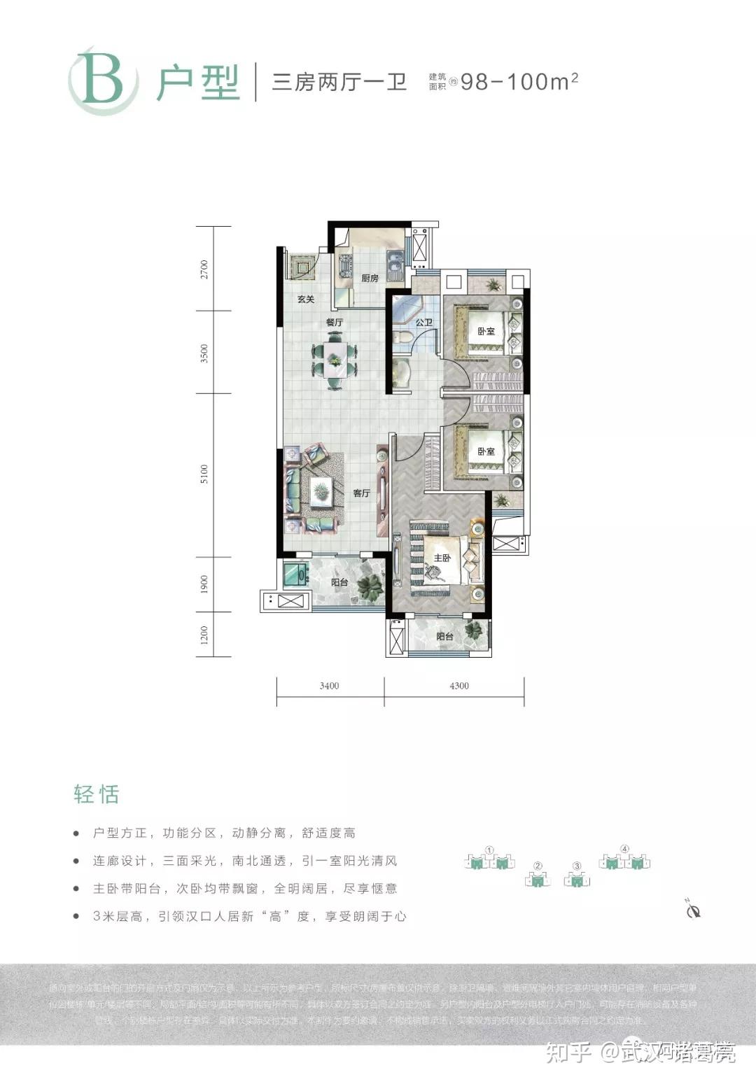 该户型2号楼端头边户,南北通透,三开间朝南,户型朴直,动静分区,主卧是温馨度较高的带独立衣帽间和卫生间的套件设想,南向大阳台和飘窗都有必然优化面积,那种三开间、户型朴直、南北通透的边户是市道上能看到的比力好的户型构造。