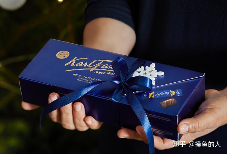 金色LOGO标记和蓝色包拆,不断是牛奶巧克力的标记和量量包管。丝绒蓝色的包拆,象征着在芬兰人雪窖冰天的情况中孕育了Karl Fazer奶巧。