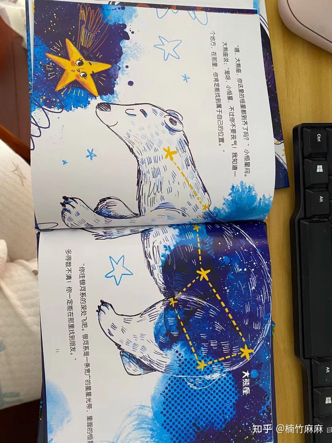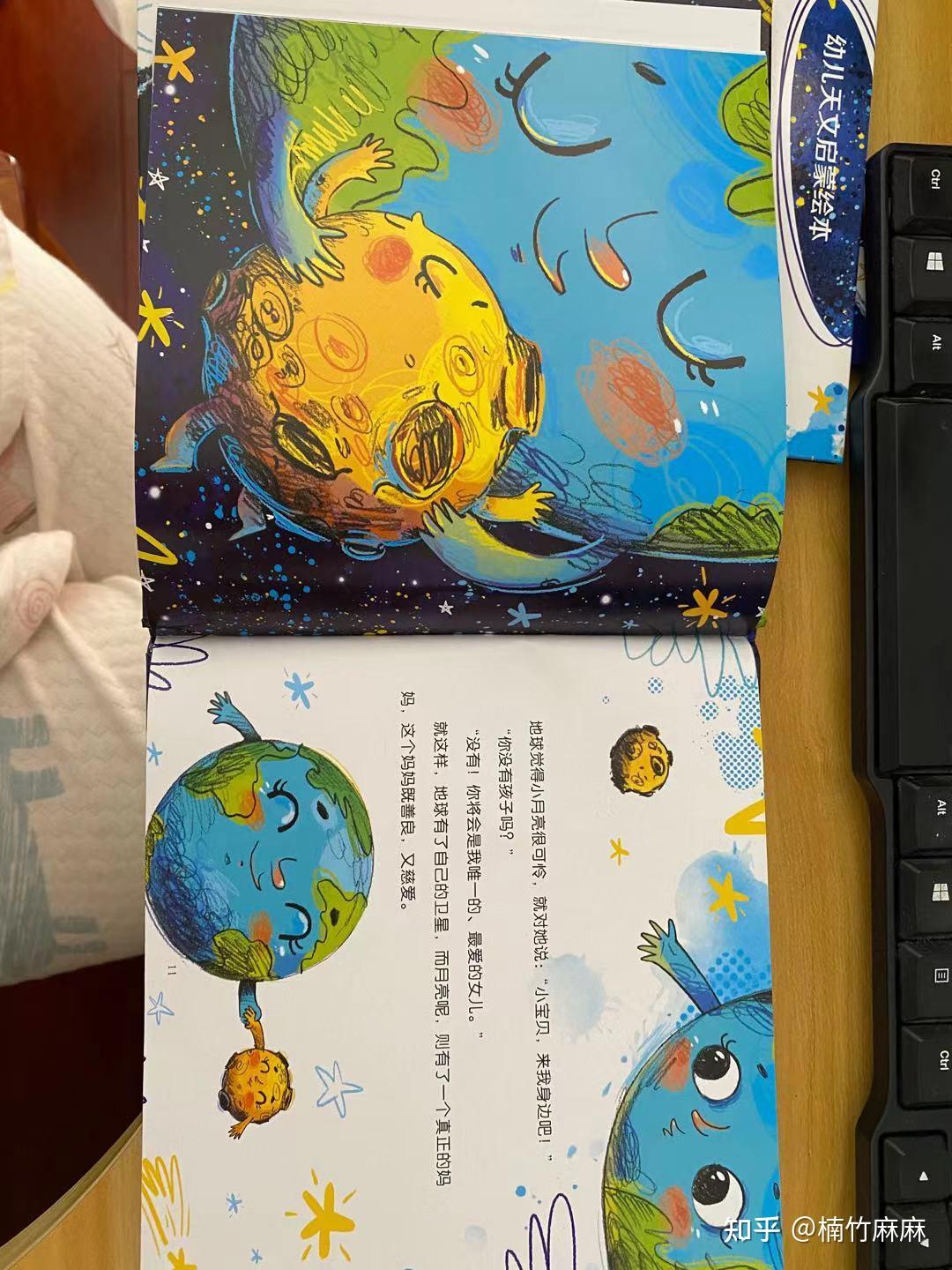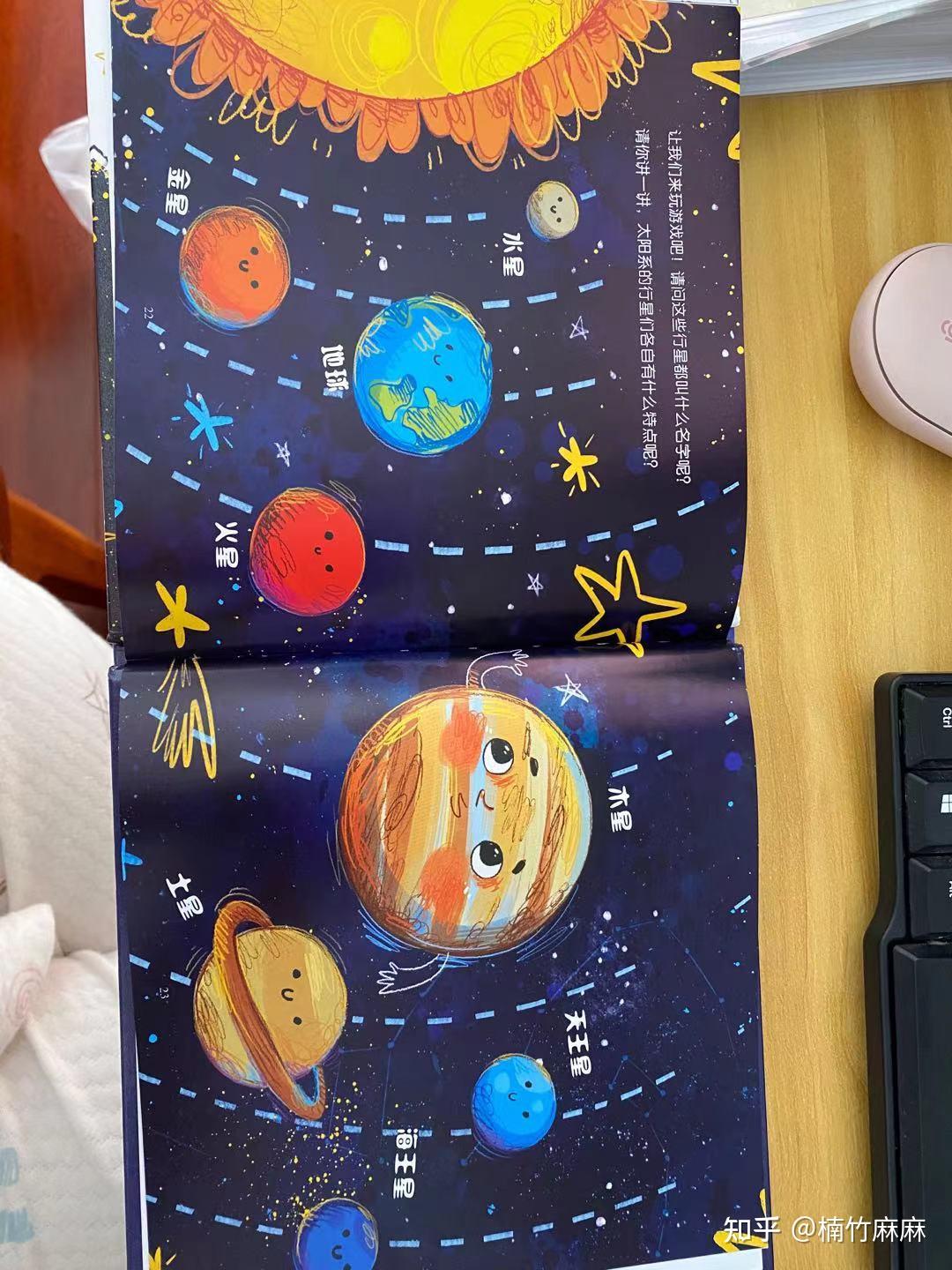 书中把各类星球拟人化,讲述了生动有爱的故事,画风也很童实,色彩鲜艳,很适宜小小的孩
