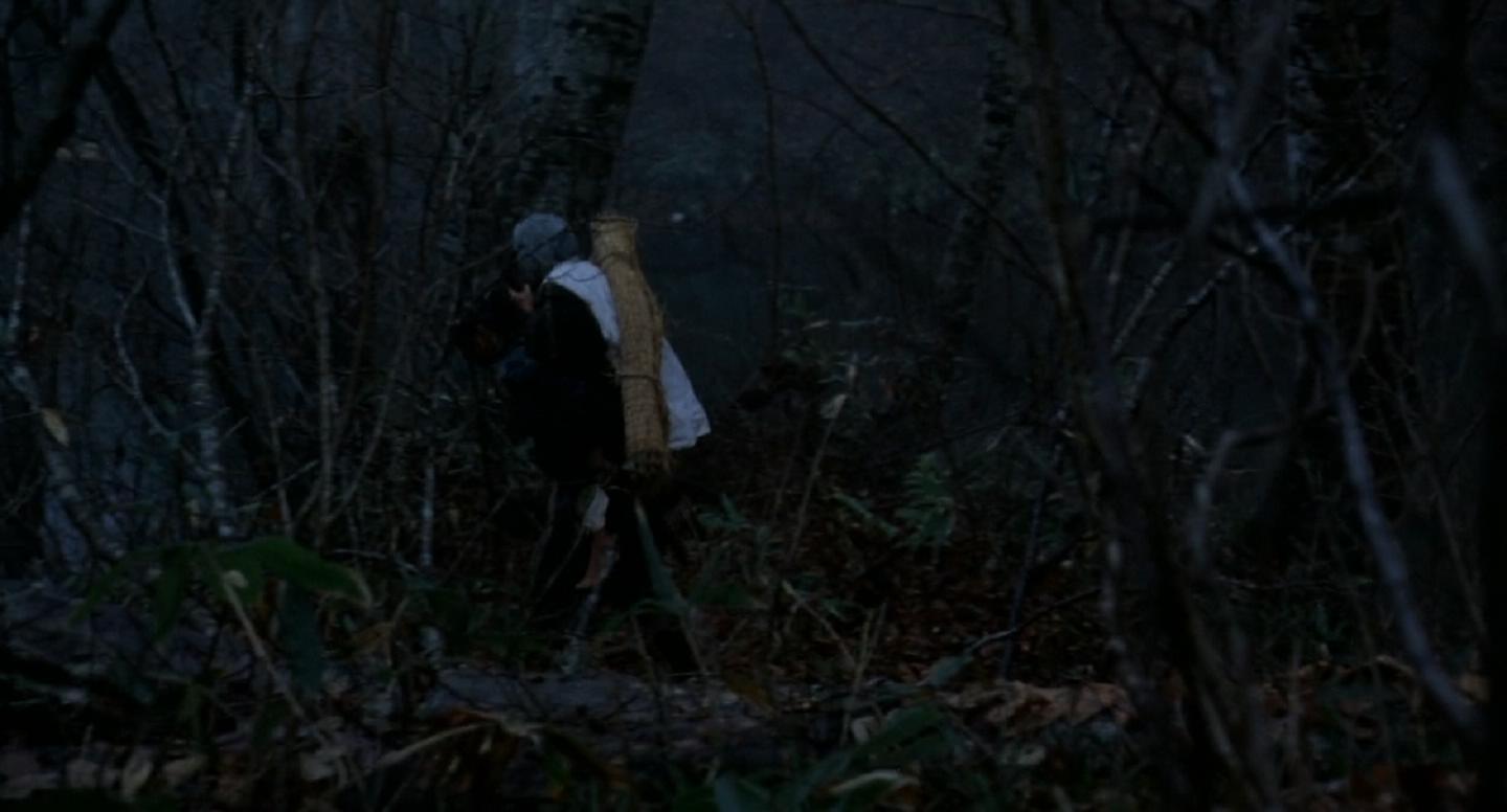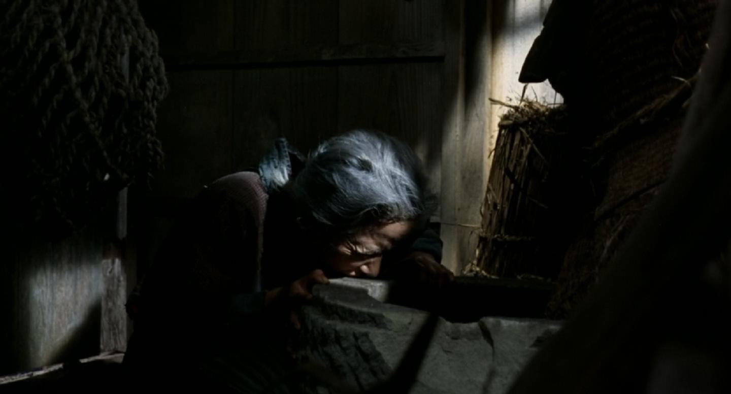 阿珍把儿子推走。辰平悲哀着下山,死后是矮小的阿珍,四周乌鸦扑腾下落地。