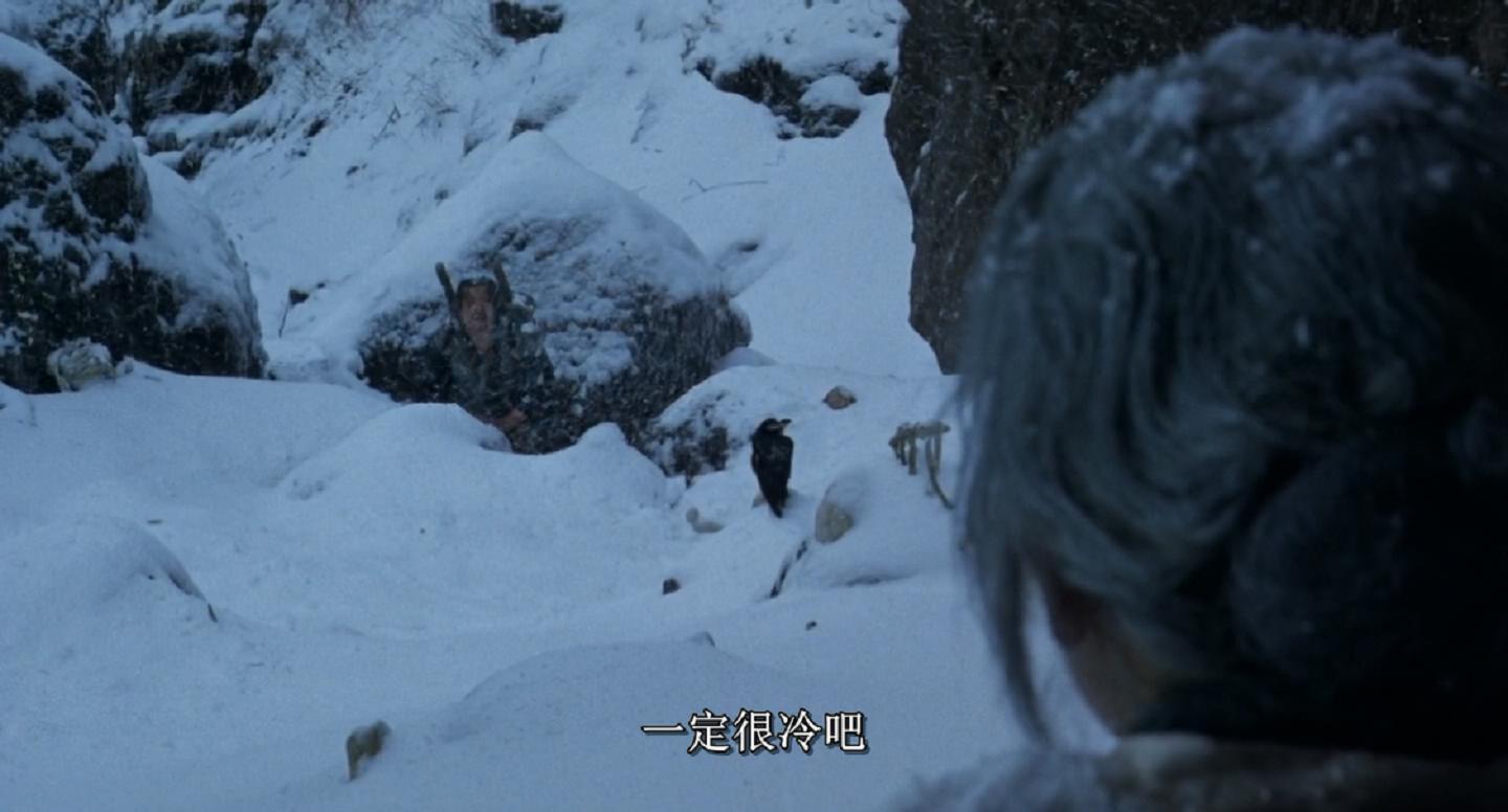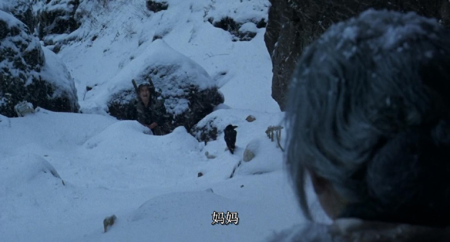 130分钟的片长,导演用了四分之一的时间来表示辰平背母亲上山,一路上是凄厉的音乐创做苦寒的山景,灭亡之路透着瘆人的恐惧和冷峻。